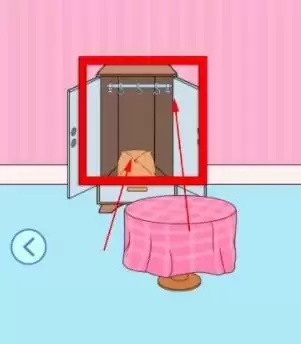 3、去右边场景,打开柜子,拿走晾衣杆和靠枕。