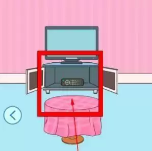 1、先来到右边场景,打开电视柜,拿出遥控器。
