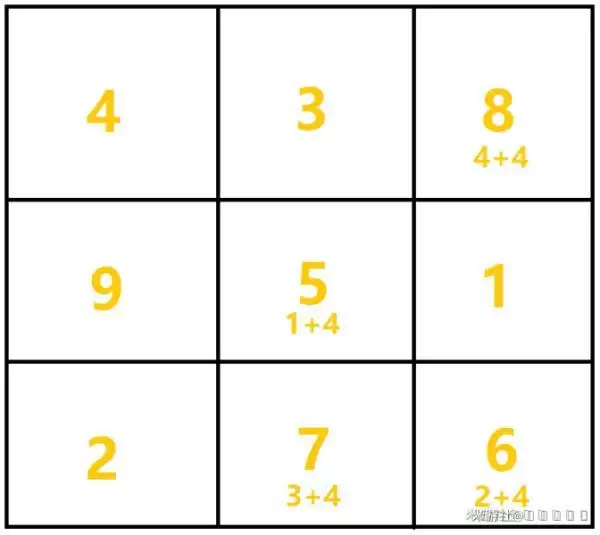画一个九宫格将刚刚得出的数字填入