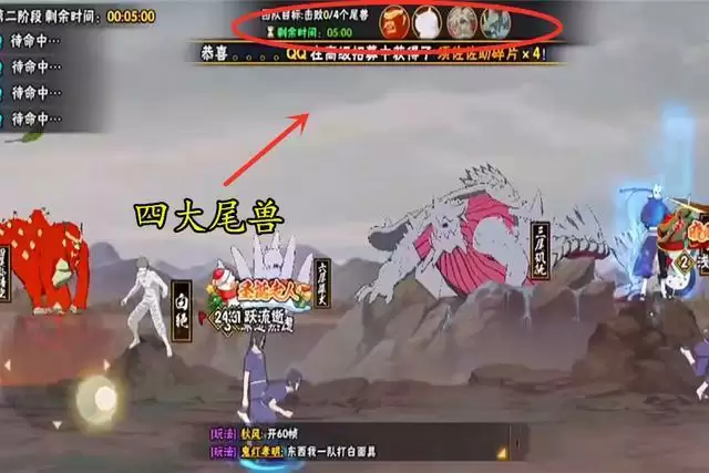 尾兽战场副本二阶段其实就相当于金银角副本的三阶段,在攻击四大尾兽BOSS之前,玩家需要先通过击杀白绝和降低白面具身上的查克拉,防止玩家在挑战尾兽时难度增加。