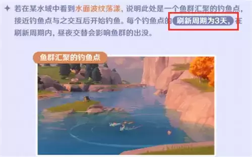 大家记住,钓起来这条鱼以后,下次这条鱼刷新时间就是现实时间3天,而鱼类出没时间,比如白天还是夜晚出没则是游戏内时间。