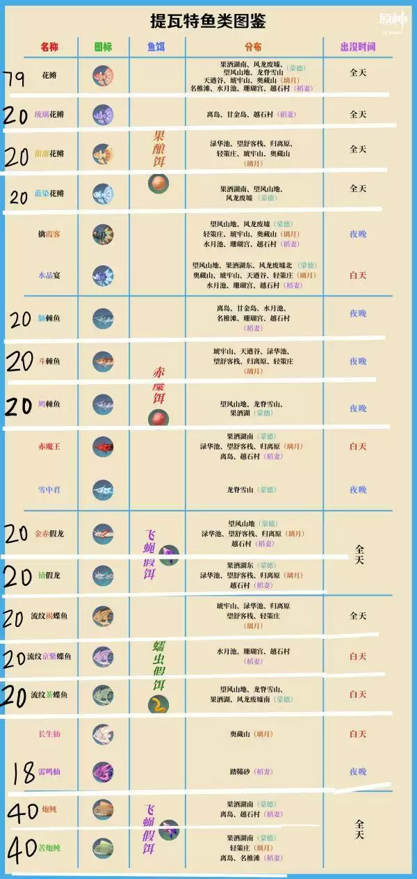 【稻妻:20花鳉 20琉璃花鳉 20肺棘鱼 20流纹京紫蝶鱼 18雷鸣仙 20金赤假龙 20锖假龙 40炮鲀 40苦炮鲀】