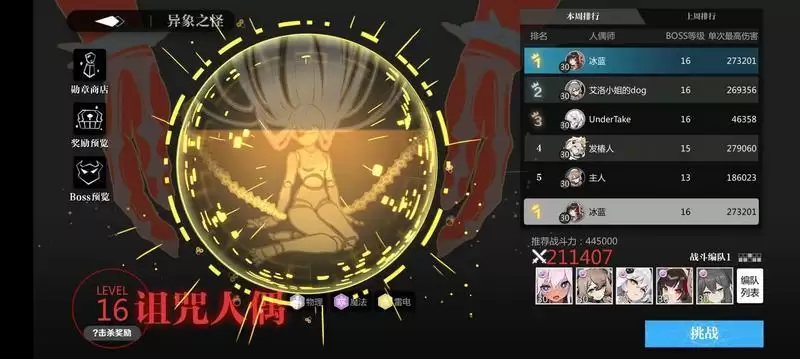 欧若拉开大后王女在充电宝的帮助下连续给两个回音,闪电20连鞭预计可以在破盾的两回合内打出40W+的恐怖输出,而16层的BOSS也不过30W不到的血量。