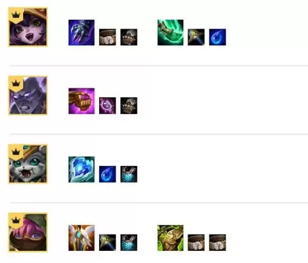 小法师以回蓝和保命装为主,天雷引需要复活甲打控制,仙灵女巫带女妖之爪,防小法师被机器人抓,多的法强装可以给焰魂当副c。