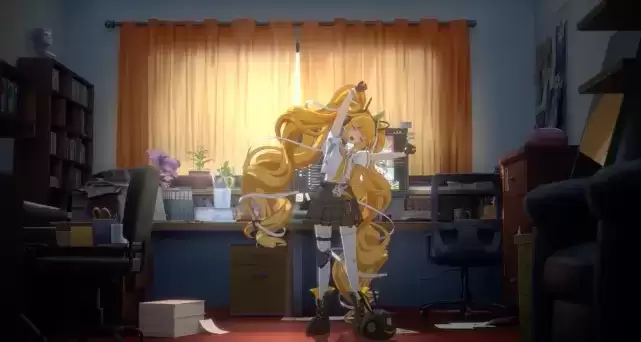安琪拉穿梭进现实世界中,与黑色兔子玩偶在房间中追逐,通过观察漫画家房间,发现自己原来是漫画中的角色,然后通过画画软件放大工具把自己的体型放大了,这脑洞也太大了。