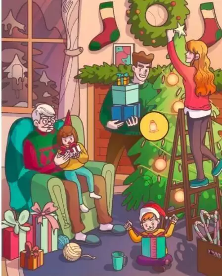旗子在右上角圣诞袜上。