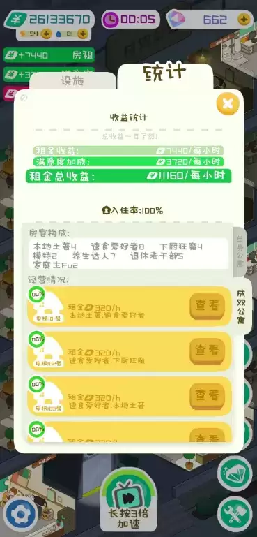 你是“996”吗?不,我是“995”,同好同好!在房东模拟器的单人区中,盘踞着一群996受害者,当然也有家里蹲和小模特,那么这就来看看单人区的收益怎么提升吧~