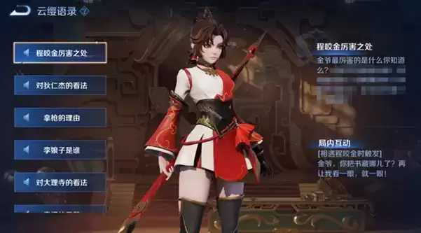本期上线的英雄语录是关于新英雄云缨的,其中包含她对狄仁杰、李元芳的看法,还有她一些只和你说的小秘密… …