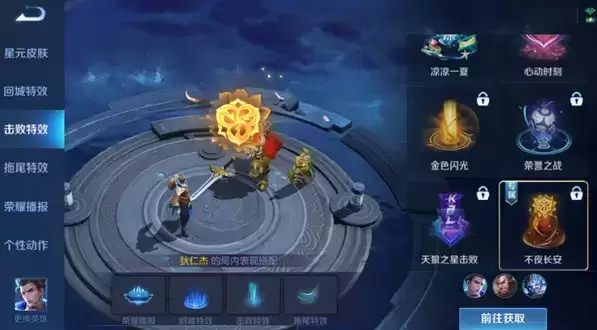 击败特效:不夜长安,赛季历练历练值达2000获取,仅《不夜长安》系列皮肤所属英雄可用