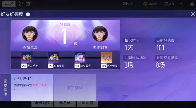 全新好友好感度系统上线,与自己的好友组队、送礼、点赞均可增加双方的好感度。好感度界面可以直观地看到车手与该好友的相识时间、当前好感度等等详细信息。