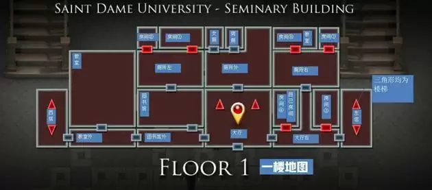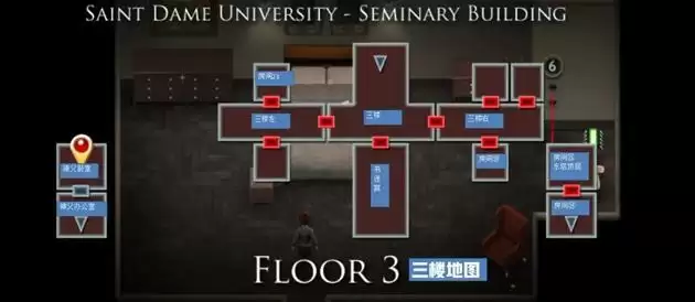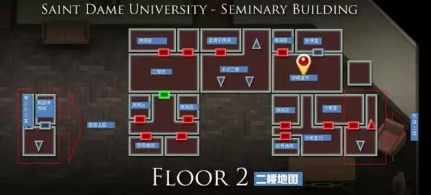 之后去教堂搜索神父尸体,获得安全卡⑨,前往西塔上层,进入左边房间(房间⑨神父办公室),捡起桌子上的硬币(13),右下角神学院地图(上面标记了三个地点),捡起椅子旁的爱经(17)【阿曼达】,桌子上有一张纸条(右下角写着Secret is G left秘密在G的左边)。