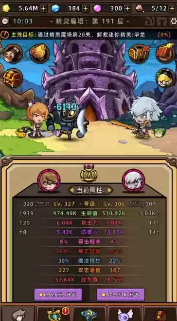 在武器级别允许的情况下,大精灵爬塔可以给精灵的情况下优先升级生产金币的精灵,先挑便宜的升级,个人目前大精灵技能点富裕3点,因为刷洞穴少,大精灵技能书比较少,只解锁到中级两个技能,感觉经验还是比较富裕的(也可能是用钱的地方太多了,尤其两把武器最后升阶各要20m),不建议在爬塔过程中用金币买东西,当然用钻石买魂就更不行了。