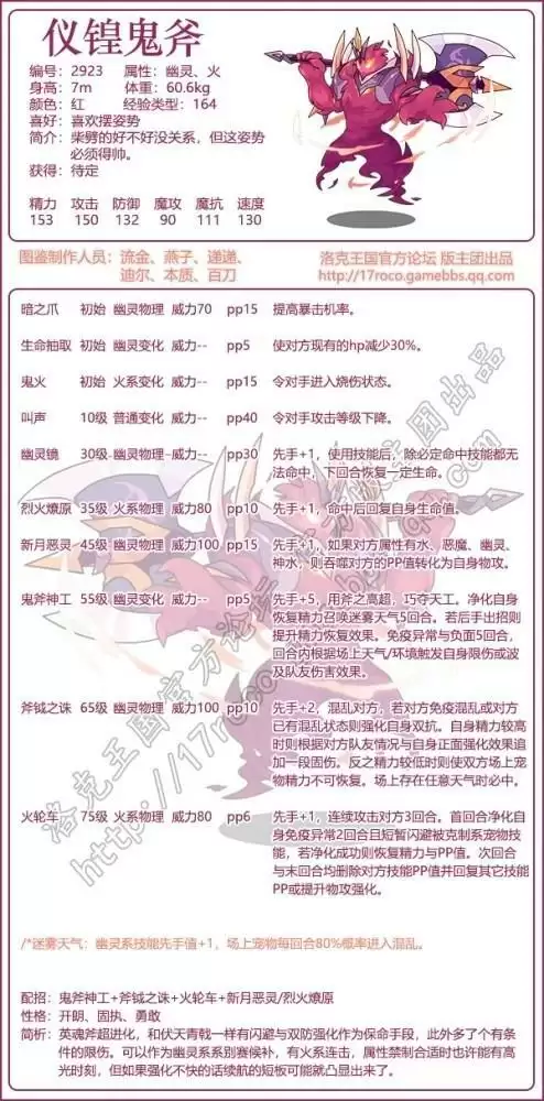 《洛克王国》仪锽鬼斧是英魂斧超进化获取的宠物,从技能和种族值来看,这是一个物攻宠,所以性格方面推荐用开朗、固执、勇敢。固执、勇敢都是加速度的,开朗是加速的。