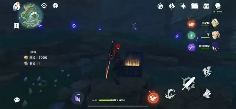 3、第三个,第三个在管名山内的树根**处跟着提示做就会获得宝箱,内有一石板