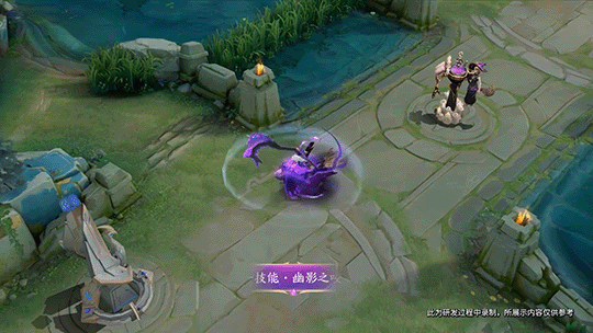 【一技能】一技能则是一个暗影的效果。使用后会在原地留下空壳,司马懿的本体则会以紫黑色的阴影形态快速移动,在他移动的同时周围还包绕着一团黑烟,似乎是蛾子的形态。可惜当已经触碰到敌方单位时并没有特效展示。