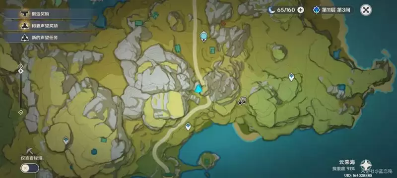 和魈弹琴的时候发现假山一直在亮,近距离观察一下之后,派蒙会让你去相似的山上看看。