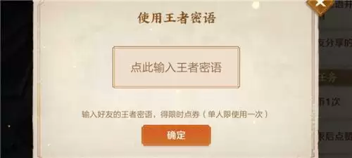 将获得的王者密语输入到这个框框里,点击确定后就能成功使用密令了。