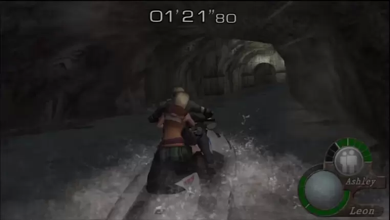 另外,对比外泄视频和原版,我们也能发现一些不同。例如游戏的结尾,在原版,总统的女儿暧昧地询问里昂,是否可以跟她回到原来的地方“加班”(overtime),里昂的回答是“sorry”,这段对话被删除了。原版阿什莉爬上水上摩托艇时内衣的春光镜头,VR版也将其掩盖。