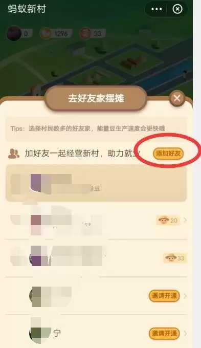 支付宝蚂蚁新村是近日新开的一个公益玩法,大家可以去好友家摆摊收能量豆,想要加好友,可以点击【去摆摊】,之后点击【添加好友】,然后在可能认识的人里,点击【加好友】即可。