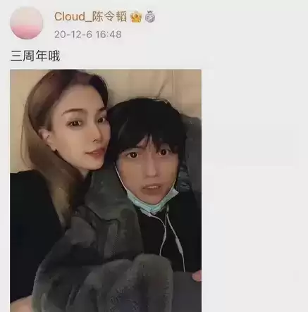 那就是在今年8月份的时候,陈令韬还在自己的微博里公开了2020年12月和大花妞的亲密合影,配文“三周年哦”。