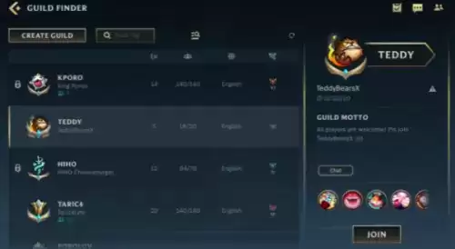 使用公会搜寻器可以依据共同喜好/兴趣、技巧水准或语言等条件来搜寻公会