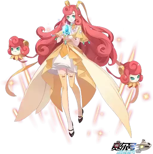 第二位新老婆桑特洛希,单纯的光属性,通过兑钻获取的精灵,这个发型看着就是很有大小姐的风范,附带另个超萌的吉祥物,这精灵看着眼熟,仔细想了一下,这不是桑特洛娃进化后的形象吗?童年回忆中作为小时候的女神,这位经典精灵没想到都等到了人形美女化的造型,看来早晚那点老精灵进化后,基本上都是这个待遇和操作了。