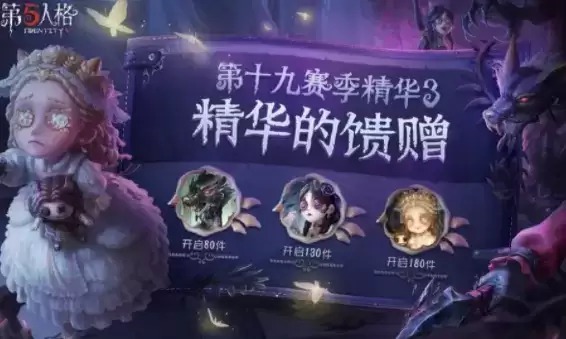 11月9日,《第五人格》公开了即将到来的第十九赛季·精华3的头像奖励,分别为头像【孽蜥-狰】、头像【玩具商-藏】和头像【“小女孩”-恶之源】,玩家们抽取精华3的次数分别达到80/130/180次时即可获得这些头像。