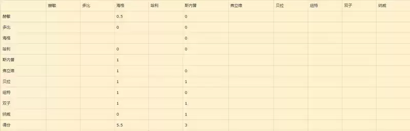 这里“1”表示对局中列的一方有优势,“0”表示列的一方劣势,“0.5”表示五五开。