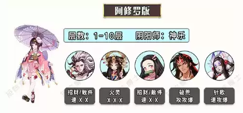 千(火灵)>吞(招财)>235>久(招财)>190>晴明>修(破荒)>麓心眼全体妖术挂机即可。