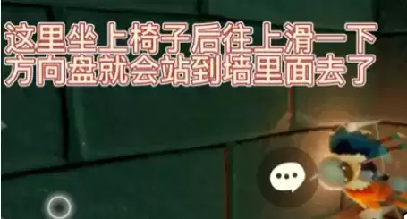 同样要利用椅子,坐上椅子后向上滑一下方向键,就会站到墙体里面,如图所示。