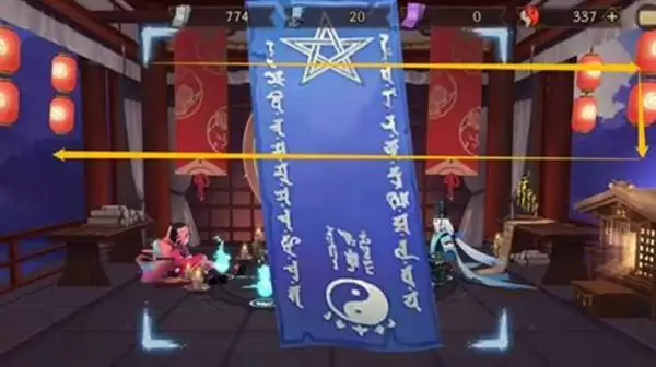 简略版的画法只需要有两个横线就可以了,如果你有“四时雅苑”的召唤屋皮肤,先把这个皮肤关闭,用最原始的皮肤来进行抽卡,根据旁边的帘子来定画线的位置。