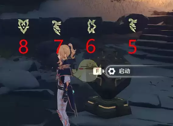 首先,这个洞窟的位置位于龙脊雪山这唯一一个七天神像的后左斜下方。其中,映入眼帘的便是一排符号,自右向左依次标记为1-8号。