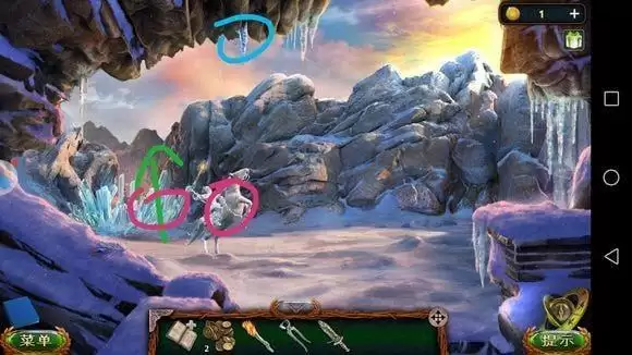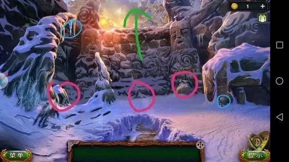 台阶上机械箱子——安机械零件(3个)——调整零件位置,拉动操作杆——可以走出洞口,进入【冰冻山脉】