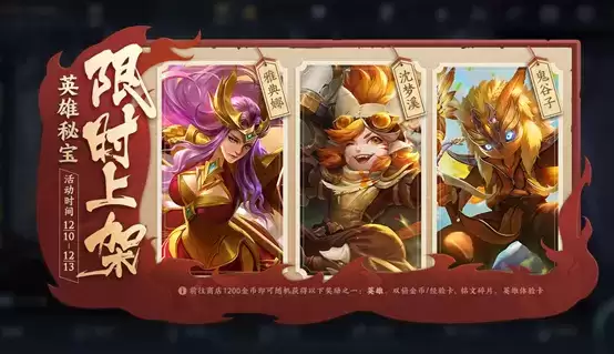 《王者荣耀》正式宣布将于12月10日至12月13日期间上架全新的英雄秘宝以及超值皮肤秘宝和优选皮肤秘宝两款皮肤秘宝。