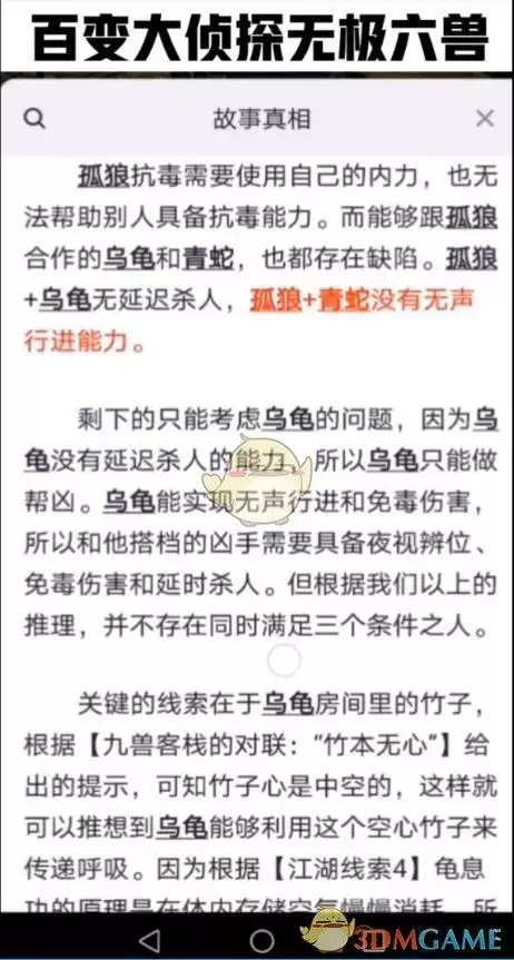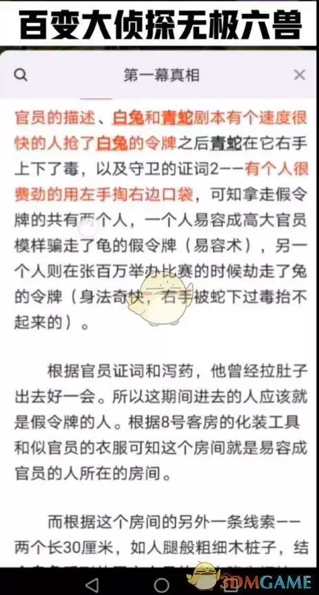《百变大侦探》无极六兽真相答案攻略大全