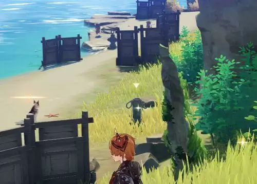 5.抓完之后果断跑路拜拜 去最右侧海边来到山腰处如图所示