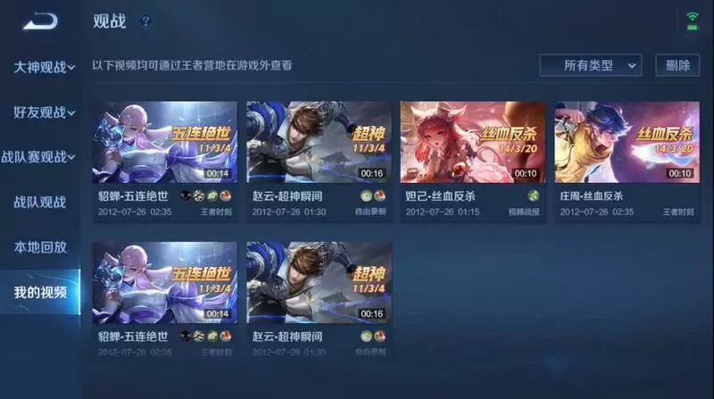 新版本中玩家可以随时在对局内进行录像,点击屏幕上方的同时即可录制30s内的游戏录像,每局可以录制5次;而在对局外的视频功能也会进行许多优化设置,帮助玩家更方便的管理自己的视频。