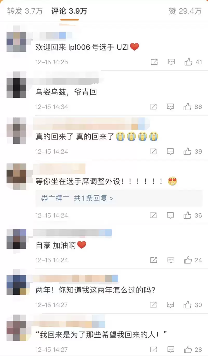 中国电竞粉丝的青春又回来了。12月15日下午,LPL英雄联盟BLG战队宣布,Uzi(简自豪)加入战队,正式复出。