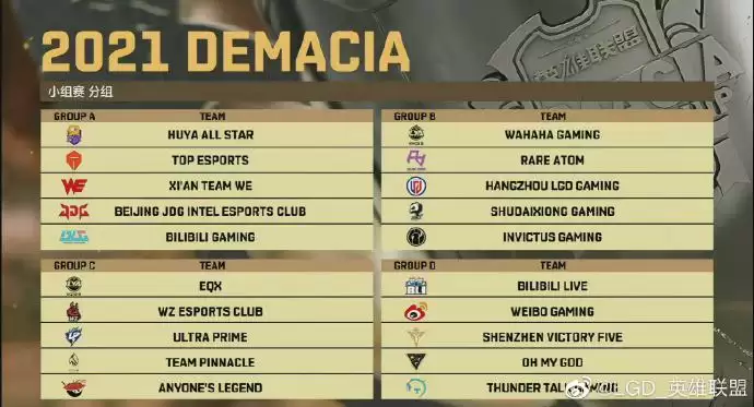 【2021LGD德玛西亚杯大名单及分组】