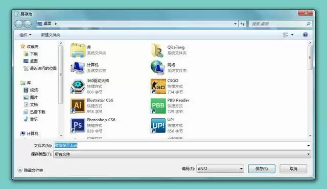 完了以后点文件-另存为,下方保存类型选择所有文件,文件名键入“微信多开.bat”。