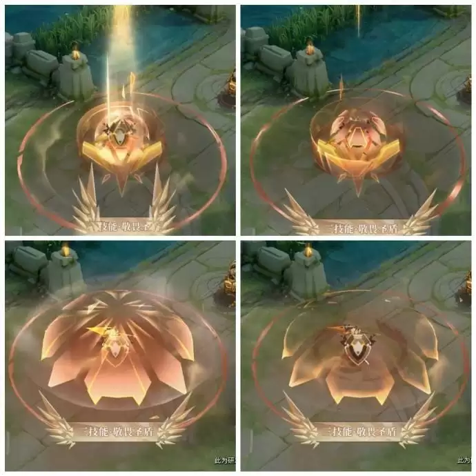 这次的特效可以说是最大的亮点。首先就是一技能的护盾有一种科技感,二技能则是一道光将雅典娜整个都覆盖住了。