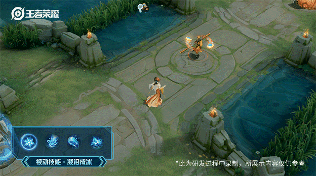从剧中师徒饮子母河之水后腹痛的桥段获得灵感,以盛水的半透明金钵作为被动标记,叠满三层后触发冰冻效果
