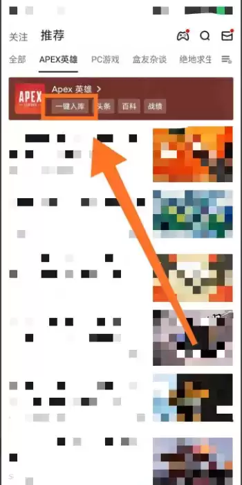 2、然后找到apex英雄并一键入库,如图所示。