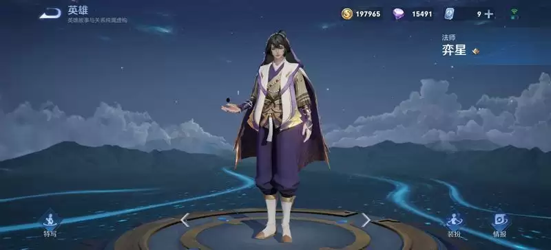 1,进入王者可以查看奕星这名英雄,他的手上拿着一枚棋子。