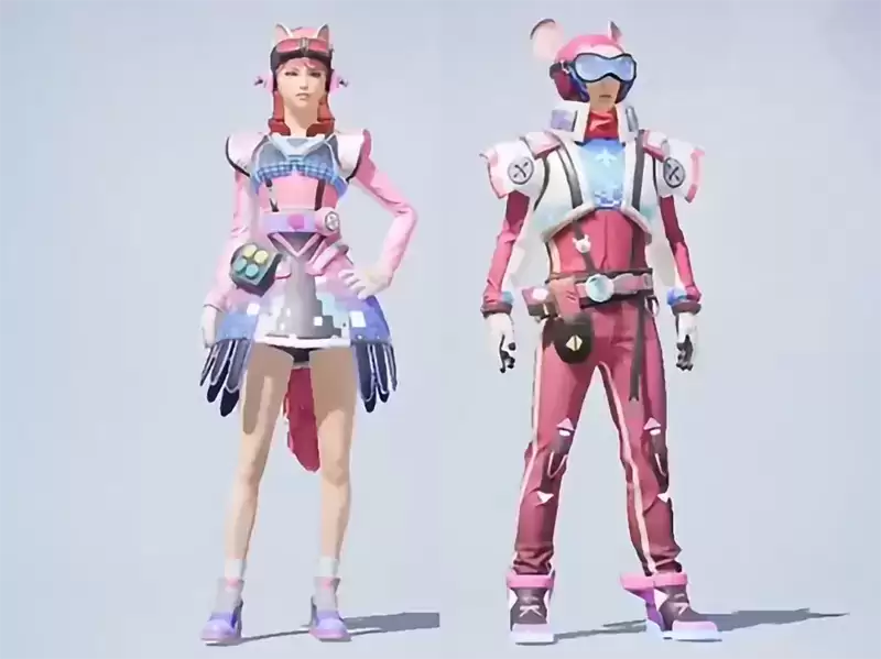 而男款其实也不赖,有点类似于“星际漫游者”套装的风格,不过这个电玩的元素确实是很独特。女款的头盔像是狐狸造型,男款则有点像“老鼠”,个人感觉男女款都好看。