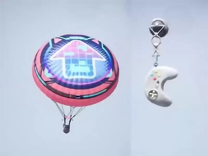 降落伞是圆形的,上面的图案是一个箭头,同样是很好看的。背包挂件是一个小型的“游戏机手柄”,和主题非常相符。