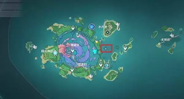 ()键纹的位置显示在悬崖里面,很多玩家在这个位置都找不到,第二个键纹位置比较隐蔽,如图所示,在悬崖下面中间的位置有一个山洞,要仔细看,进入山洞之后,会有一个非常大的空间,在中间的位置就可以看到第二个键纹,这里有愚人众看守,将其击败即可获得键纹。