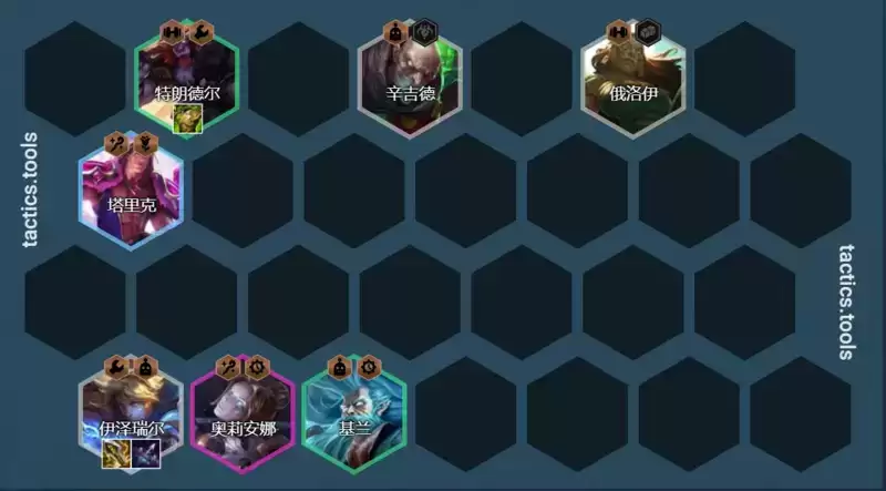 5人口补充俄洛伊凑出2格斗家羁绊,格斗家能够增加全队150血量在前期对于阵容来说是非常重要的。当然也可以用蕾欧娜+机器或者波比+机器这种2保镖搭配。这套玩法可能就是目前为止最舒服的拉8人口阵容了,