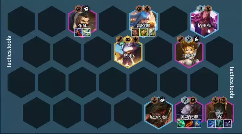 阵容组成:厄运小姐、蕾欧娜、布隆、烬、奥利安娜、迦娜、悠米、塔里克
