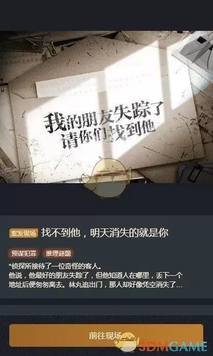 赏金侦探游戏中很多小伙伴想知道找不到他明天消失的就是你案件是怎么过的,答案是什么呢?下面小编就给大家带来了赏金侦探找不到他明天消失的就是你攻略介绍,一起看看吧!